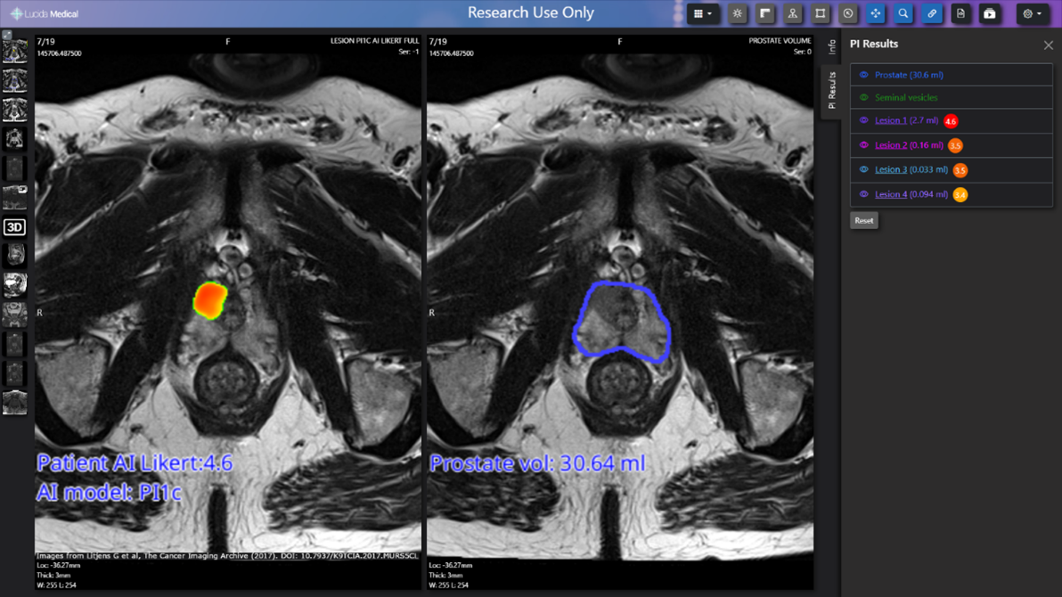 Pi™ is built using Lucida Medical’s proprietary AI training technology that that has been trained to identify prostate cancer from MRI scans. Preliminary analysis suggests the software has accuracy comparable to expert radiologists, according to results presented at the 2023 International Cancer Imaging Society annual meeting from a diverse group of six NHS hospitals who are participating in the PAIR-1 clinical study [v]. Making the Pi™ software available to radiologists across the NHS could help speed up the work of radiologists and reduce the risk of both missing cancers and unnecessary biopsies.