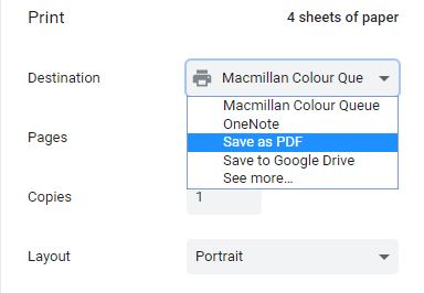 2. Then change the destination to 'Print to PDF'