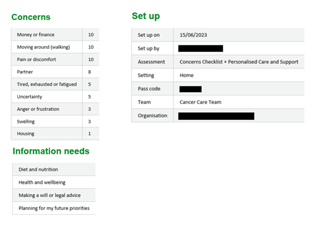 You can also see what the assessment tab would look like for a real service user who has completed the assessment here.